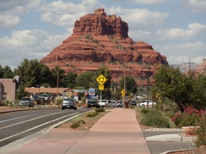 The mountains such as this are all around Sedona, called Red Rock Country..Our camera was clicking most of the drive. I have a different shot of this mountain that I am already painting…. The creek you see is Oak Creek and Oak Creek Scenic Drive follows it almost all the way to Flagstaff, as it curves through the Coconino Forest. Several camp grounds through there if you are into camping…..It seemed to me like this was a resort city, as I did not see any industry other than tourist, however, that seemed to be doing pretty well….