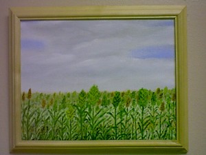 I did this painting from a photo I took down around Rogers, NM several years ago. It is surprising what you do paint, but I really enjoyed painting this, but why would anyone want to paint a milo field….You got me