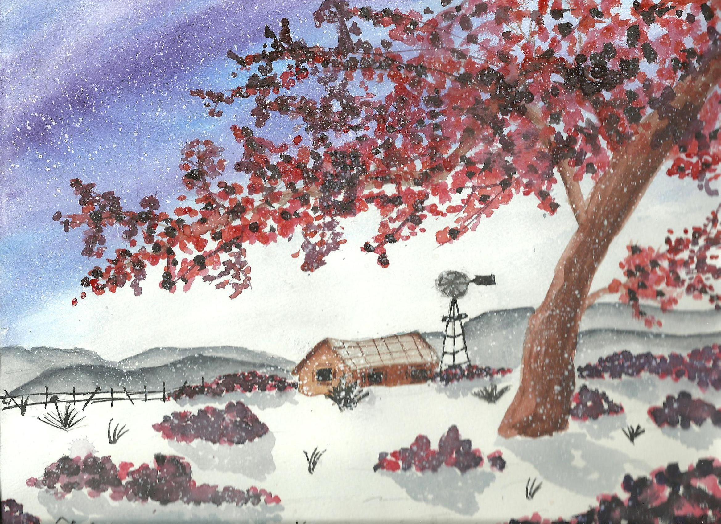 Our niece, Chelsie, won first place at the Roosevelt County Fair, Portales, NM with her watercolor painting just recently. We are very proud of her and I asked if she would let me show all your folks her works. She agreed so here it is. Chelsie is a sophomore down in Portales, NM. It is a very nice painting…. Good job, Chelsie…..